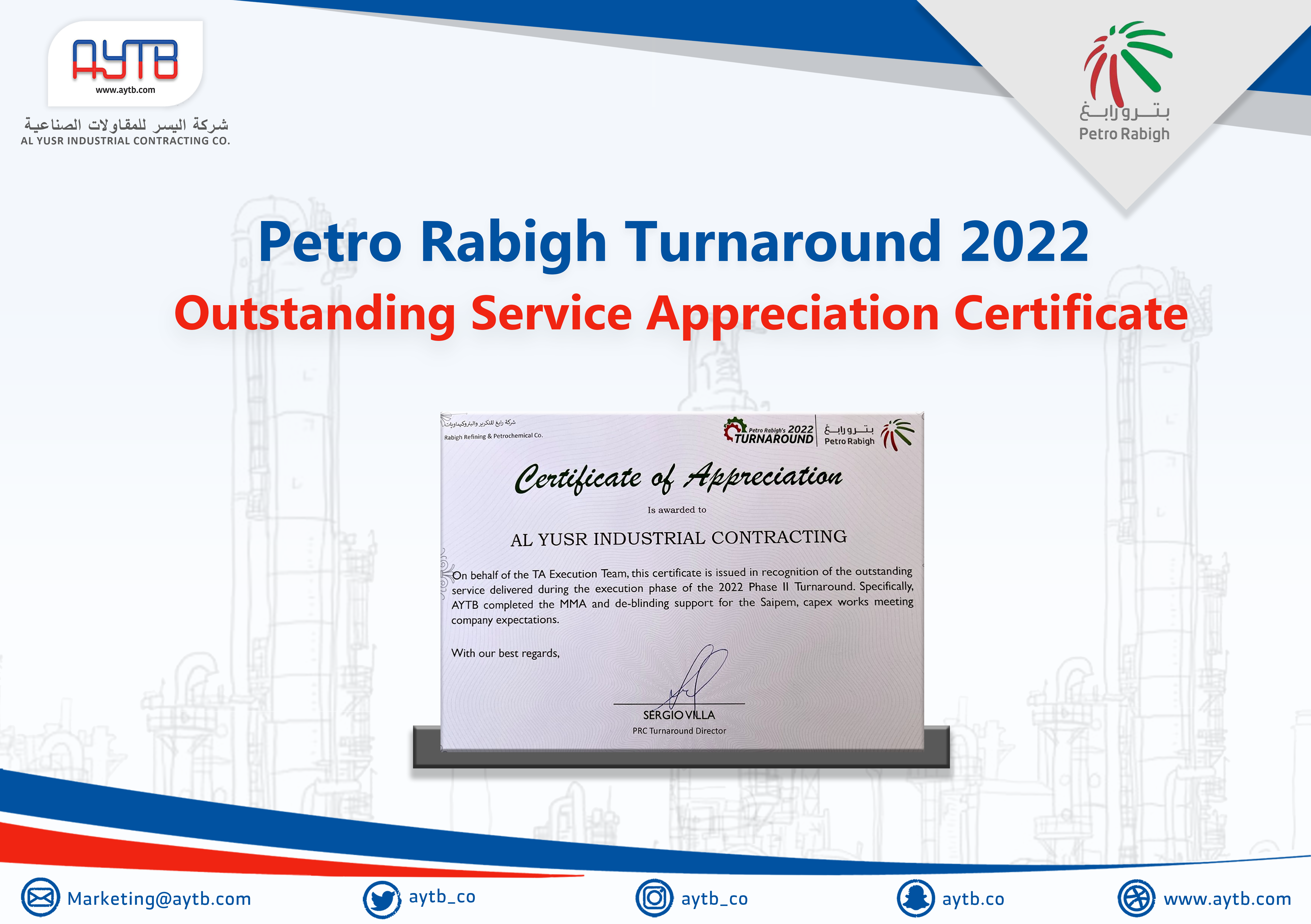 Appreciation for AYTB successful contribution and performance in Sipchem 2022 Turnarounds2022-06-30