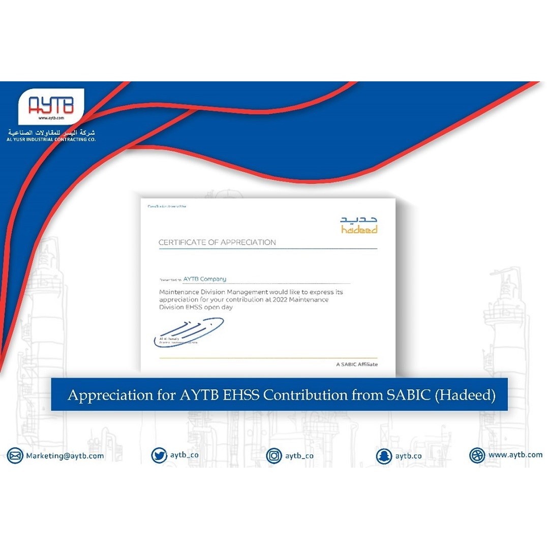Appreciation for AYTB EHSS Contribution from SABIC (HADEED)2022-06-01